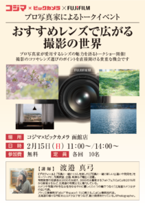 2月14、15日は函館へ! コジマ✕ビックカメラ函館店にて、富士フイルムさんの撮影会とトークイベントを担当します。 撮影会は夜まちスナップと花火! Xシリーズのレンズをいろいろお貸出ししての、夜まちスナップと花火撮影会で […]